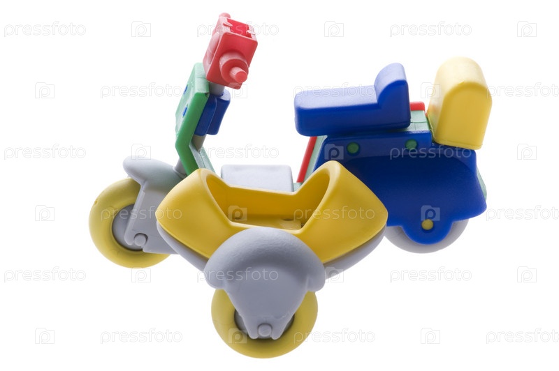 Объект на белом игрушечном мотоцикле с повозкой