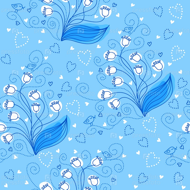 Бесшовный цветочный узор с ландышами и птицами