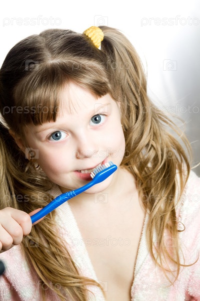 Девочка чистит зубы