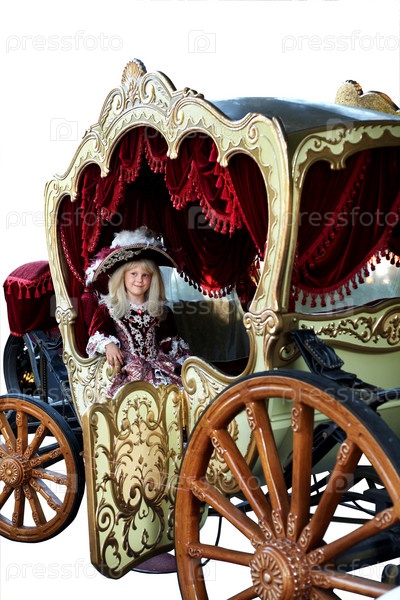 Девочка в старинном наряде сидит в карете