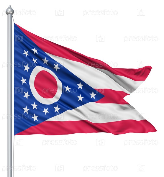 Флаг штата Огайо (США), развевающийся на ветре. 3d