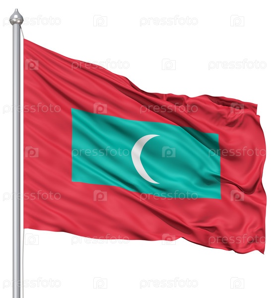 Флаг Мальдивских островов, раздуваемый ветром. 3d