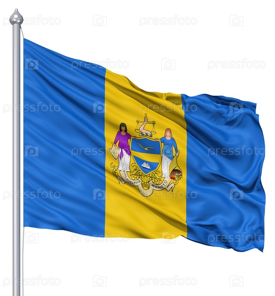 Флаг Филадельфии (США), развевающийся на ветре. 3d