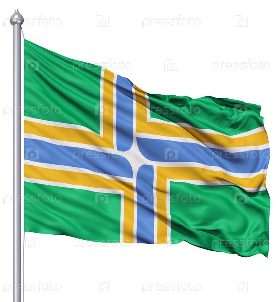Флаг Портленда (США), развевающийся на ветре. 3d
