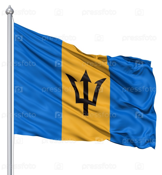 Флаг Барбадоса, развевающийся на ветре. 3d