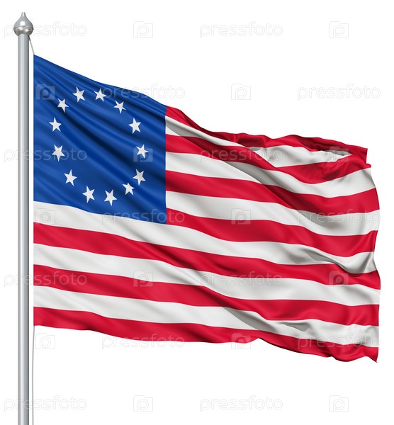 Флаг Бетси Росс, развевающийся на ветре. 3d