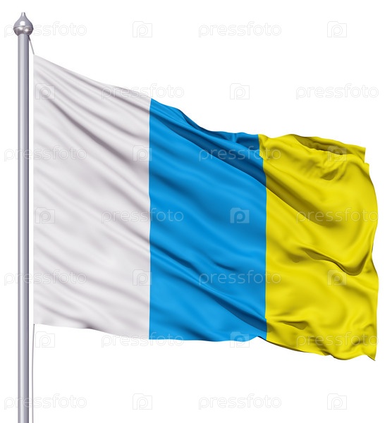 Флаг Канарских островов, раздуваемый ветром. 3d