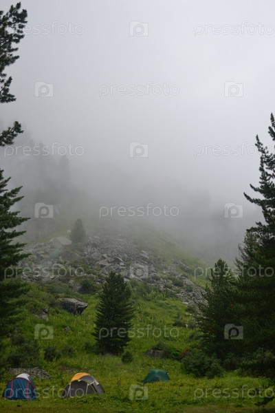 Палатки на поляне, горный Алтай