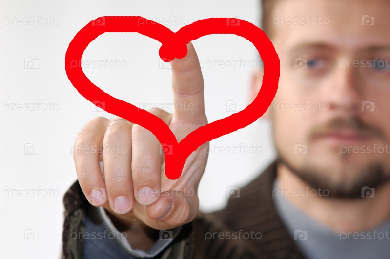 Мужчина рисует красное сердце на стекле