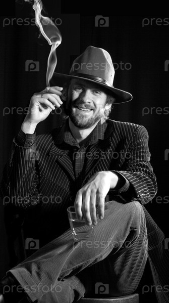 Улыбающийся мужчина курит сигару