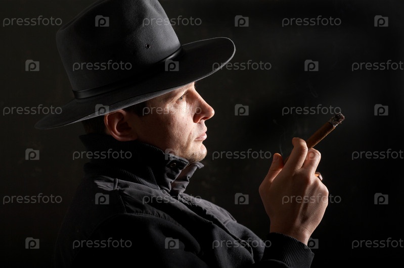 Мужчина с сигарой на темном фоне
