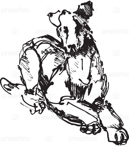 Черно-белый эскиз собаки