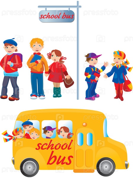Школьники стоят на автобусной остановке