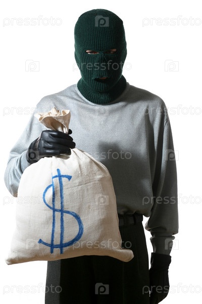Человек в маске с мешком денег