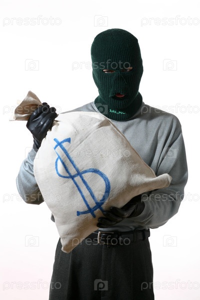 Человек в маске с мешком денег