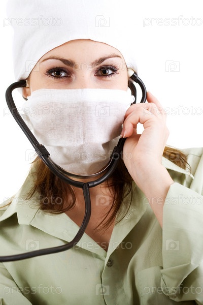 Врач в белой маске со стетоскопом
