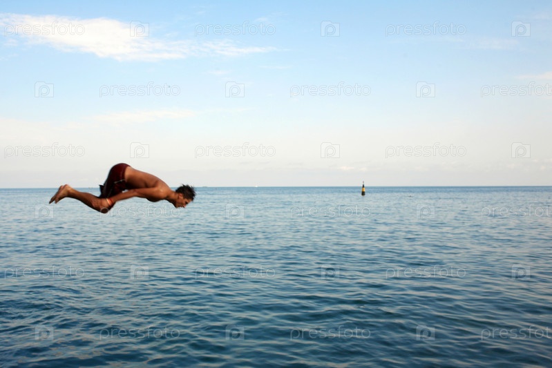 Мужчина ныряет в океан