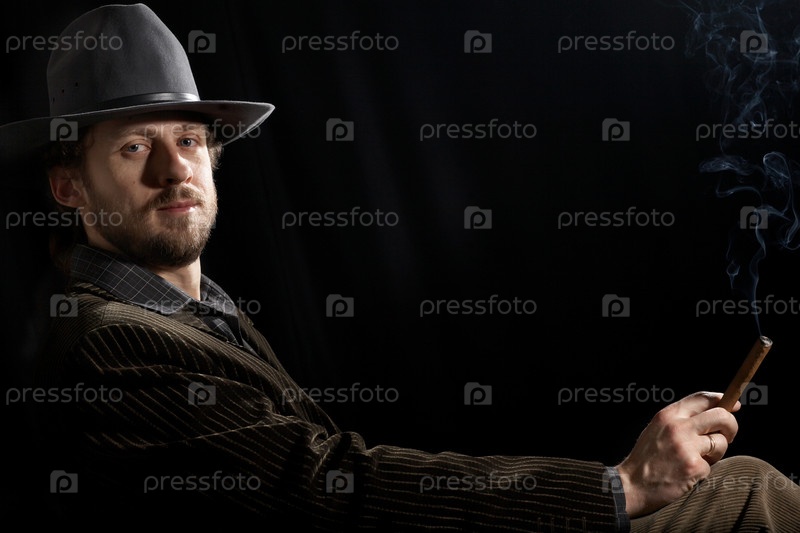 Бородатый человек в серой шляпе с сигарой