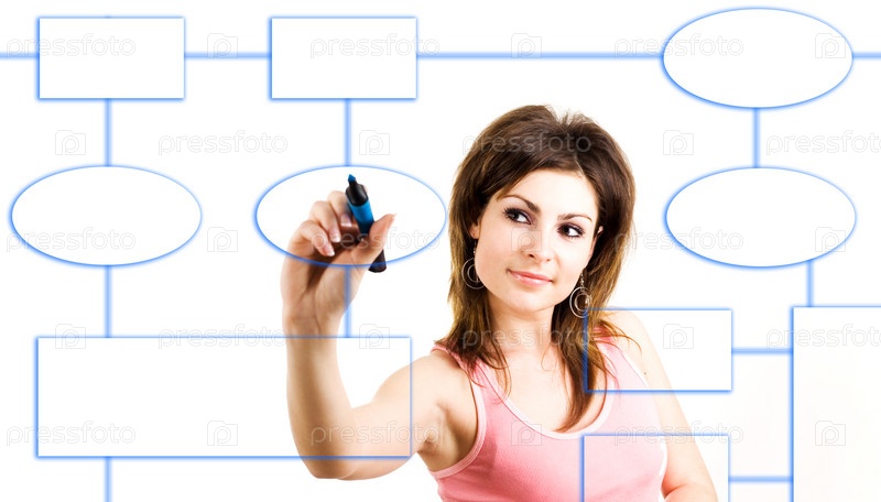 Девушка чертит схему