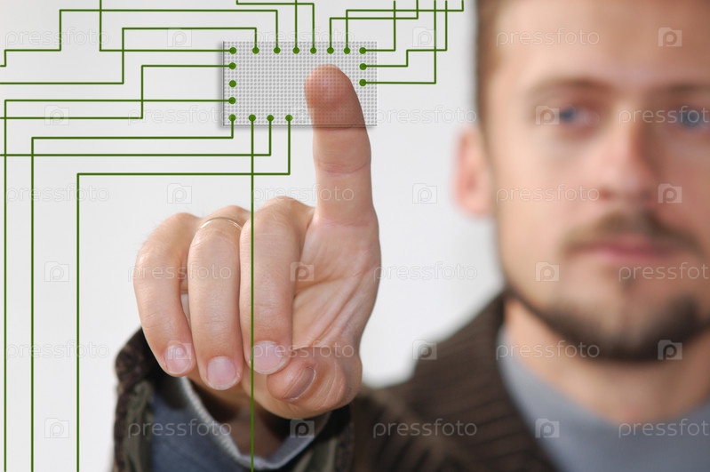Мужчина нажимает сенсорную кнопку