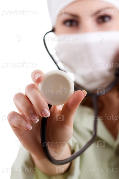 Врач в белой маске со стетоскопом