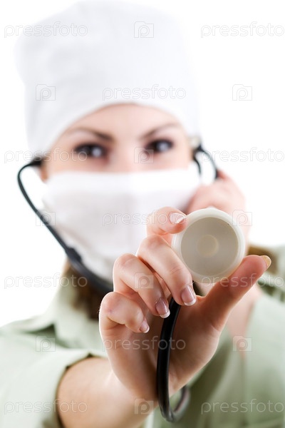 Врач в белой маске со стетоскопом