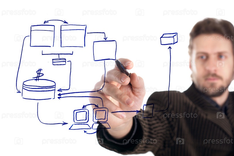 Мужчина чертит схему