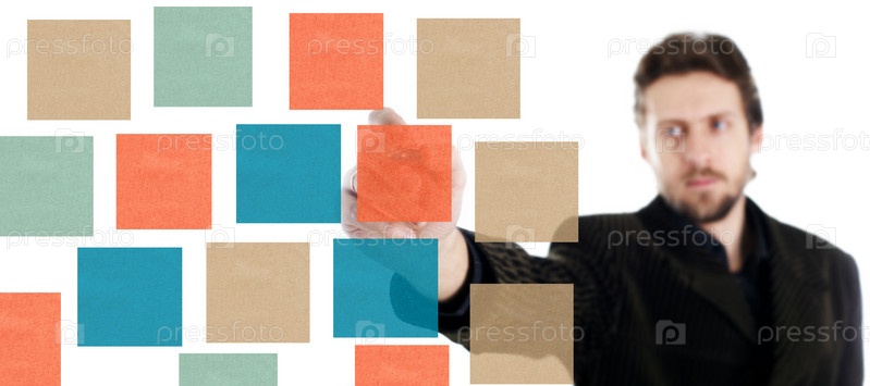 Мужчина пишет на листах бумаги