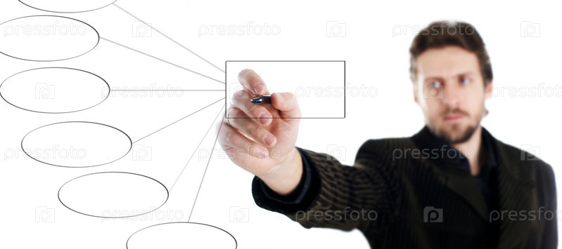 Мужчина чертит схему