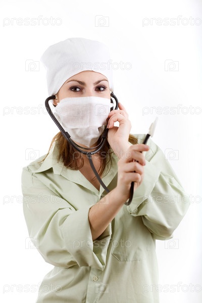 Врач в белой маске со стетоскопом