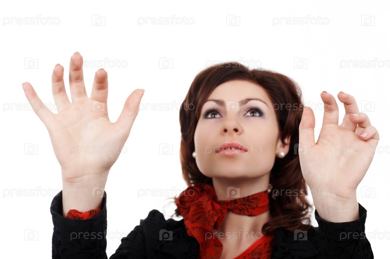 Женщина печатает на виртуальной клавиатуре