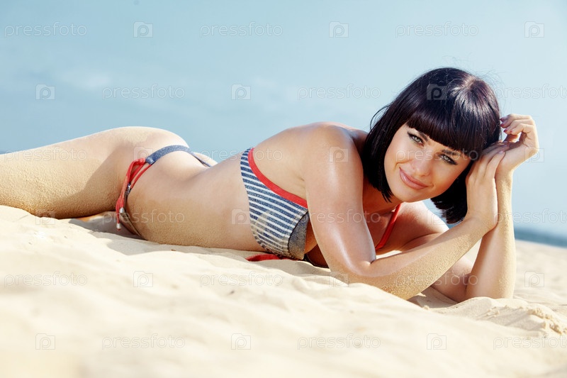 Портрет красивой стройной женщины, отдыхающей на пляже летом
