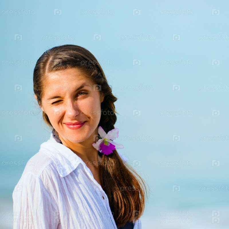 Подмигивающая женщина на фоне неба