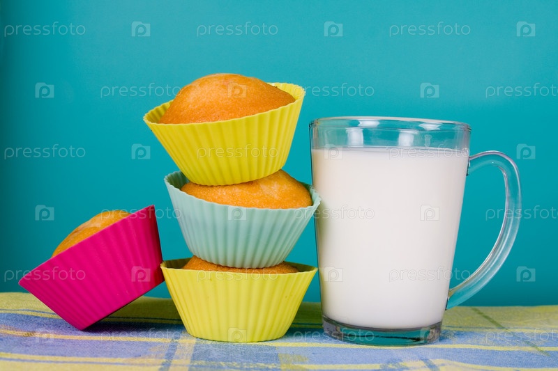 Кексы и молоко на градиентном фоне