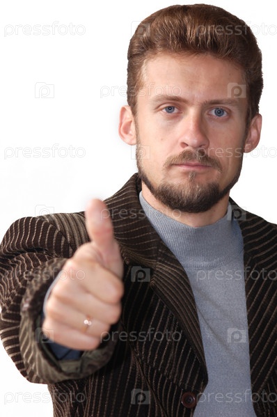 Бизнесмен показывает поднятый большой палец