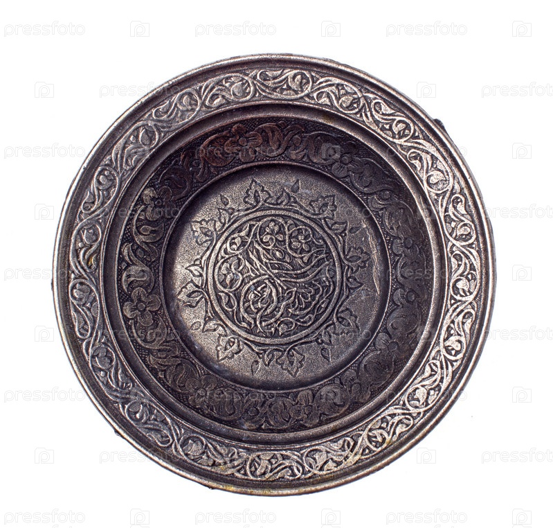 Турецкое металлическое блюдце, изолированное на белом фоне