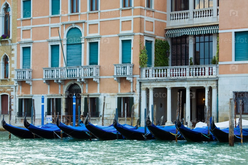 Красивый летний вид Гранд канала с гондолами на воде. Венеция, Италия