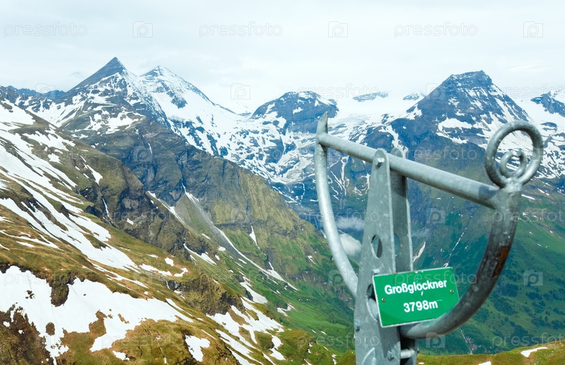 Вид вершины Гросглокнер летом с высокогорной альпийской дороги