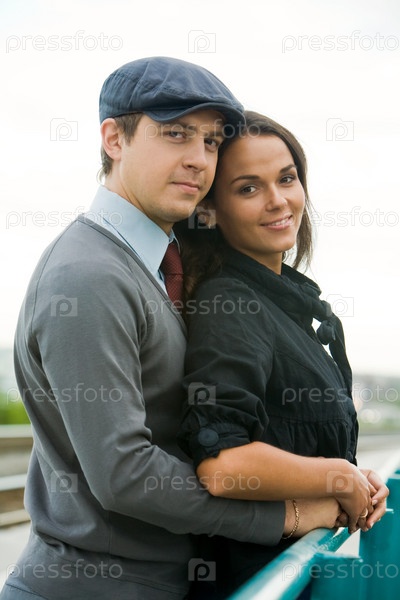 Привлекательная пара смотрит на камеру с улыбкой