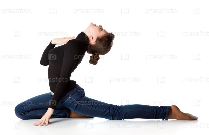 Красивая женщина занимается спортом или танцами, изолированная на белом фоне