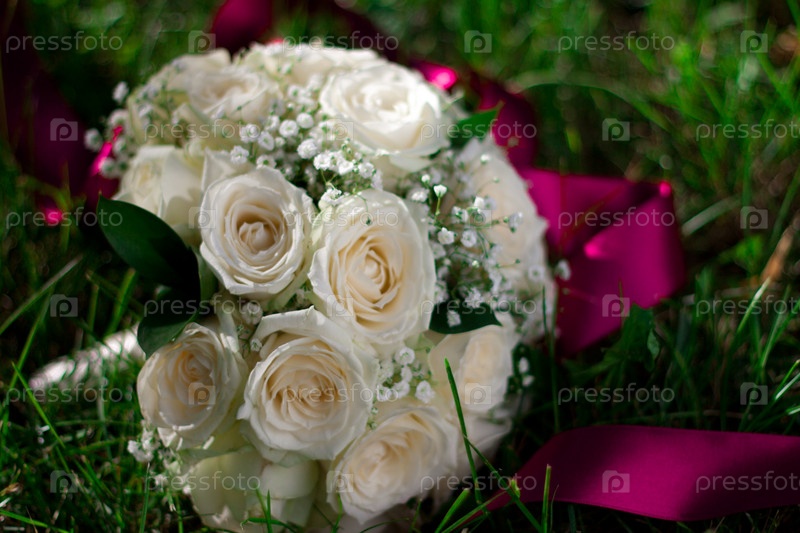 Свадьба. Букет невесты лежит на траве