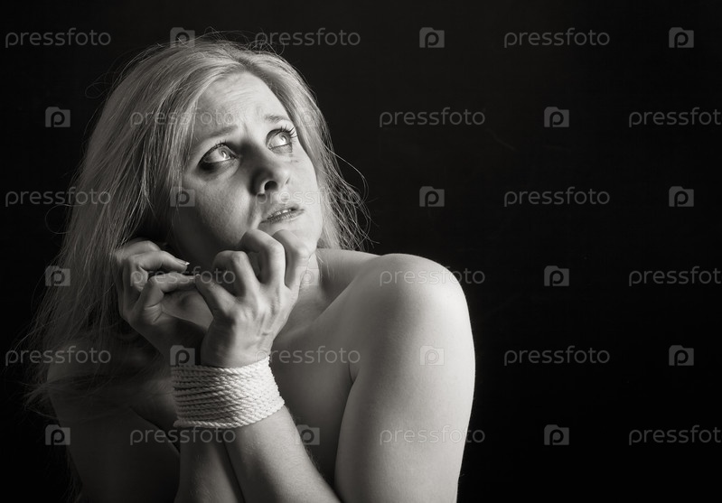 Женщины, являющаяся жертвой бытового насилия и жестокого обращения. Черно-белая фотография