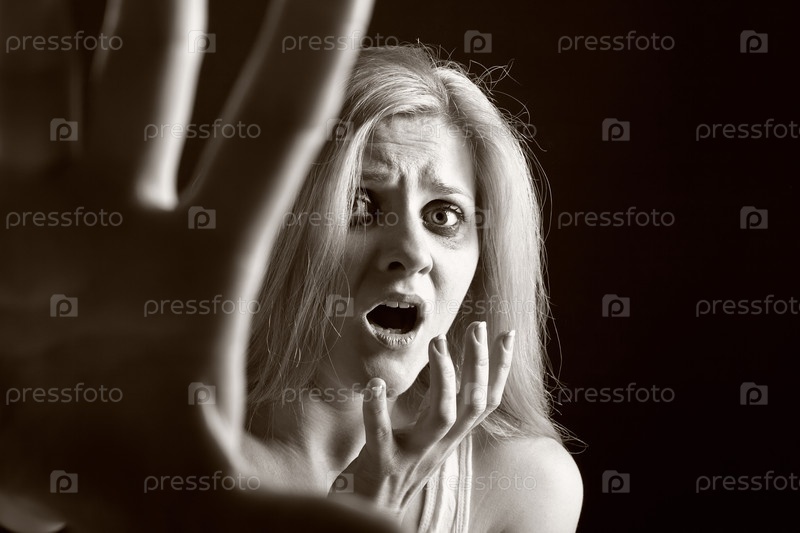 Женщины, являющаяся жертвой бытового насилия и жестокого обращения. Черно-белая фотография