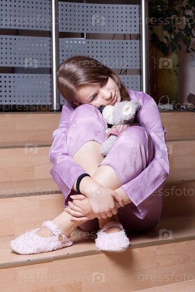 Девушка в розовой пижаме в комнате