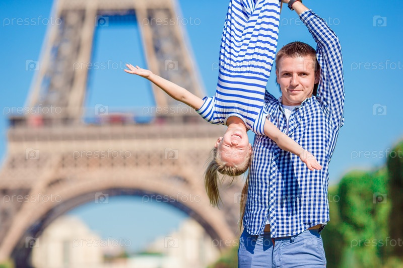 Красивая счастливая семья в Париже