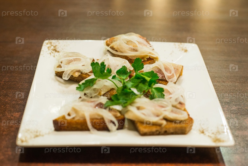 Тосты с луком и селедкой