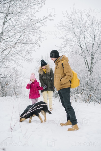 Счастливая семья в зимнем парке