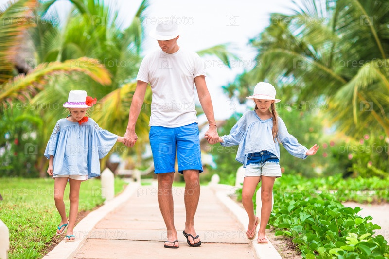 Счастливая семья на тропическом отдыхе