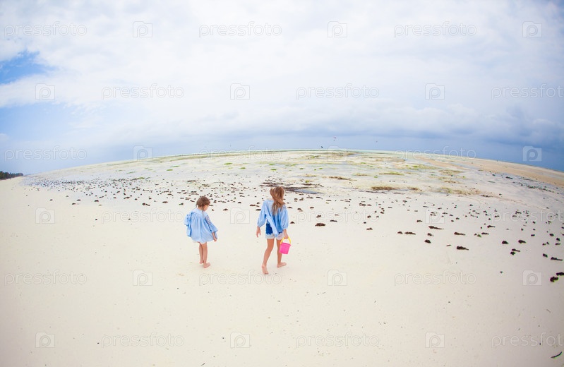 Очаровательные девочки во время пляжного отдыха