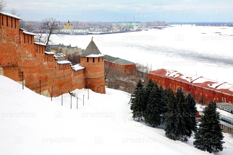 Вид порта Нижнего Новгорода из Кремля в марте, Россия
